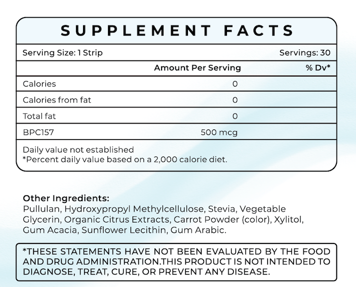 Other Ingredients: Pullulan, Hydroxypropyl Methylcellulose, Stevia, Vegetable Glycerin, Organic Citrus Extracts, Carrot Powder (color), Xylitol, Gum Acacia, Sunflower Lecithin, Gum Arabic.